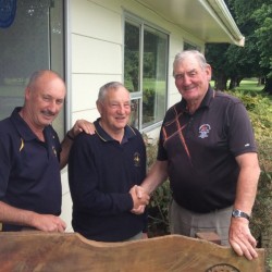 1/ Challenge Week winner John Duffy (centre) shaking hands with Sir Brian Lochore (R) and Club President Robert Braddick (L)