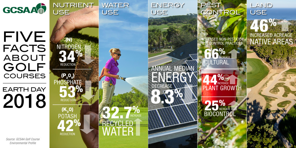 - Nutrient use: U.S. golf courses have significantly decreased overall nutrient use since 2006, including a 34 percent reduction in nitrogen, a 53 percent reduction in phosphate and a 42 percent reduction in potash.