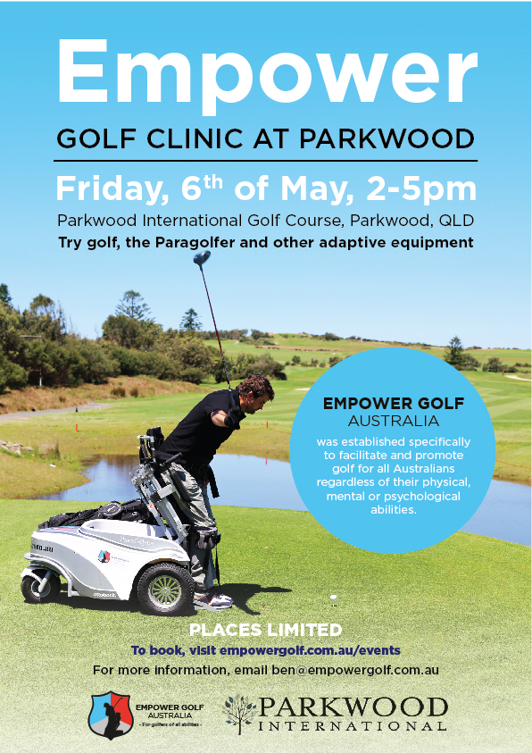Empower Golf Australia is proud to invite you to our Free Come and Try Golf Clinic at beautiful Parkwood Golf Club, less than an hour from Brisbane’s CBD, on 6 May 2016. These clinics introduce people to golf for the first time or reintroduce players to the game they love after accident or illness.