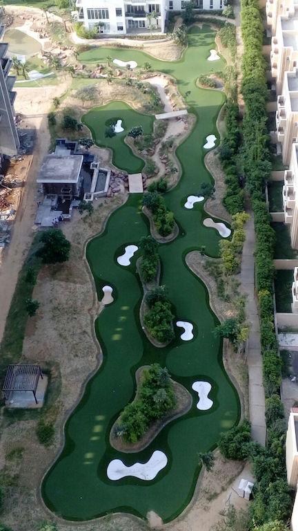 A roof-top view of the putting course at M3M