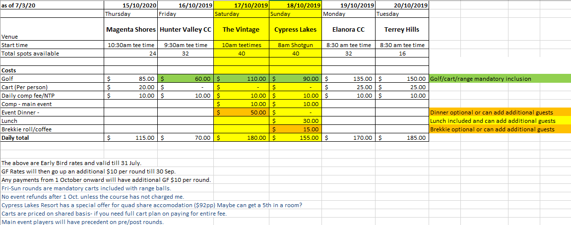 Fri 16 Oct 9:30 tee times am Hunter Valley GC