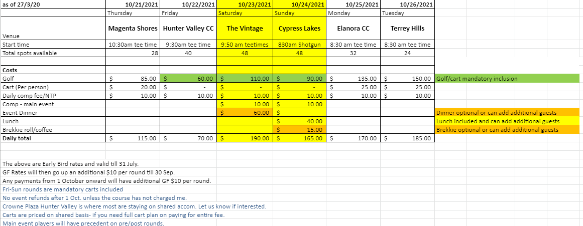 • Mon 25 Oct – 8:30 am tee times Elanora CC (32)