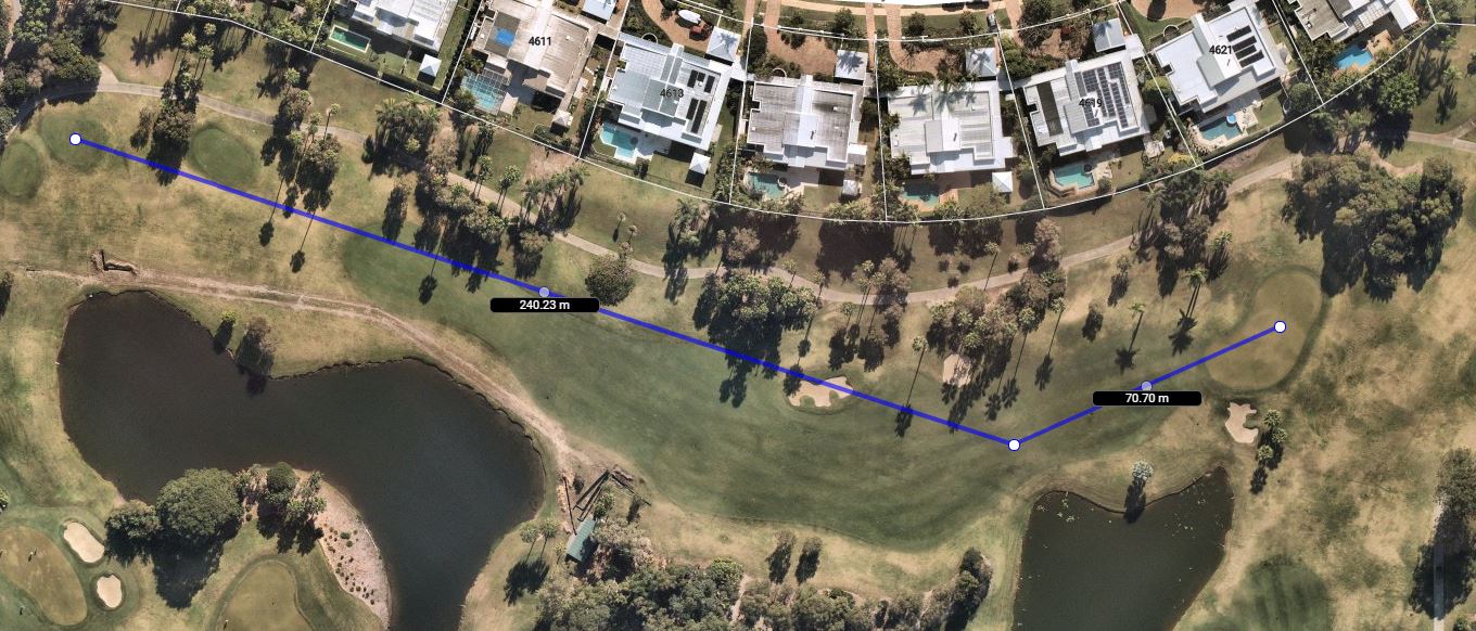 That’s where it will finish, the aiming point is about 10m+ right of that, well outside the bunker knowing it will draw back on the breeze and end up there.